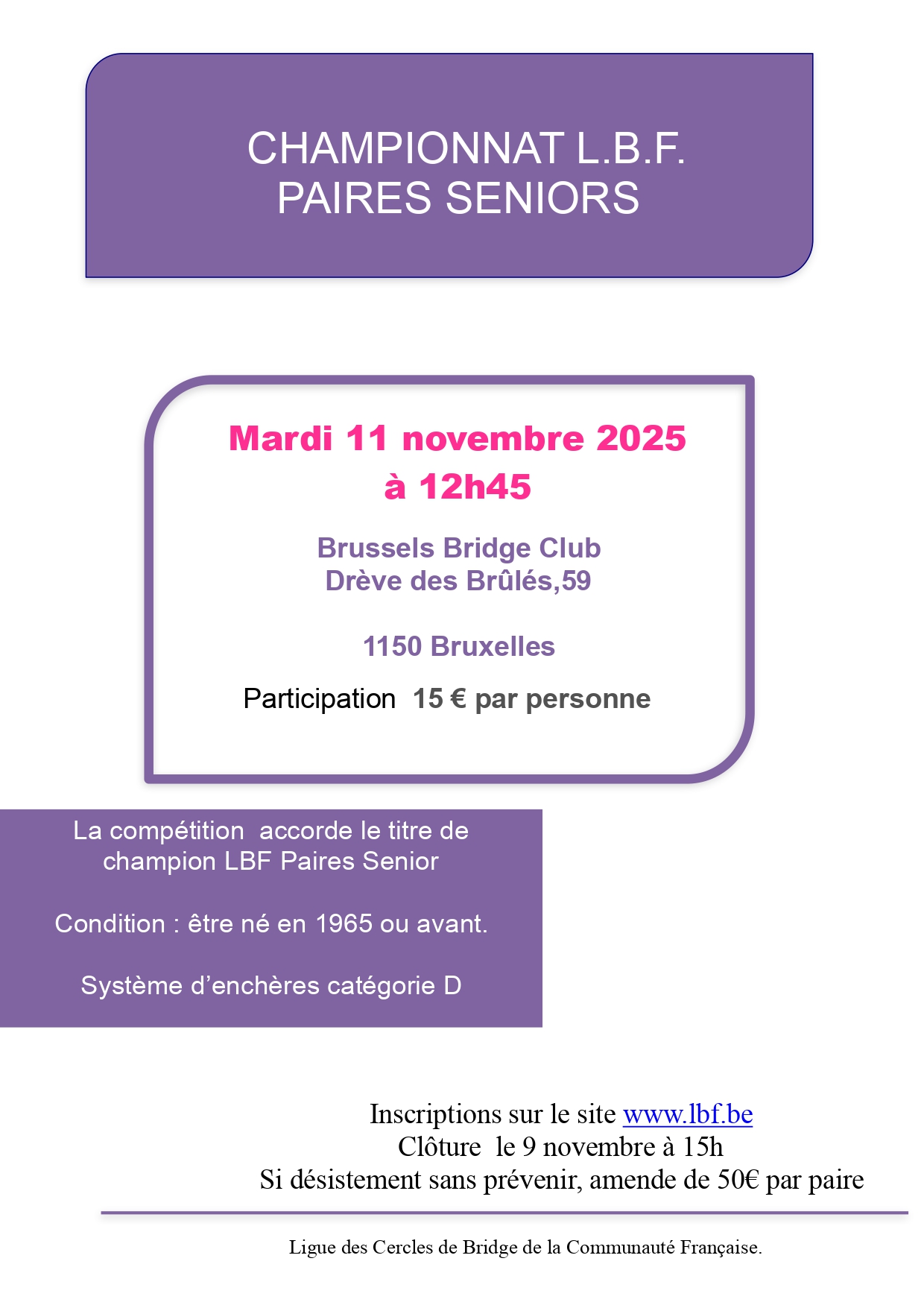 La Coupe Bruxelles-Brabant est une compétition par carrés qui se déroule le samedi après midi et qui s’adresse aux joueurs et joueuses qui ont peu l’habitude de la compétition et qui souhaitent découvrir le plaisir du jeu en équipe.